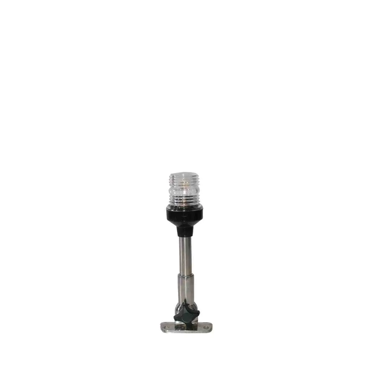 360º clear dioptic lens. Stainless steel poles, cast stainless steel bases. 121336 has a two pin socket base with splash proof cover to protect connections when pole is removed. 121335 has a folding base. 12 volt bulb.
