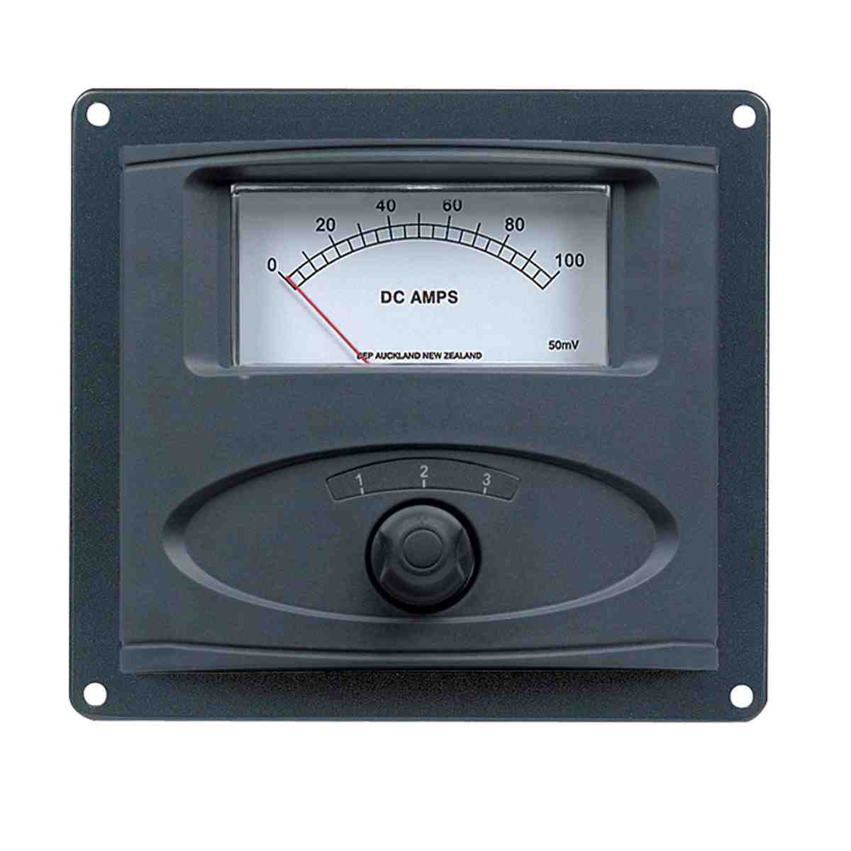 Switchable for use on up to three different ammeter shunts. Supplied with one shunt depending on meter scale. Meter scales available; 0-50, 0-100 and 0-150. Durable powder coated aluminium chassis panel with contour styled dress cover. Green LED backlit meter.