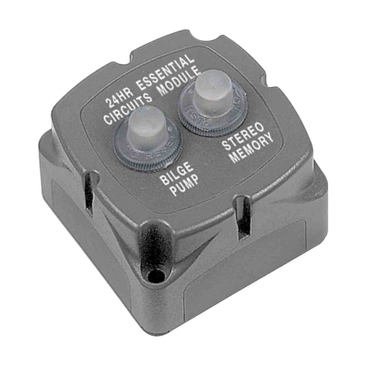These modules offer 24 hour protection to essential circuits so that they are not switched off by the main battery switch allowing protected power to supply bilge pumps, security systems and electronic memory circuits. They incorporate thermal type circuit breakers with push to reset function to ensure that essential circuits cannot be switched off inadvertently. Designed to match all other Contour power distribution products with modular sizing and lock mouldings to facilitate easy grouping. Label sheet 113696 or 113697 ordered separately.