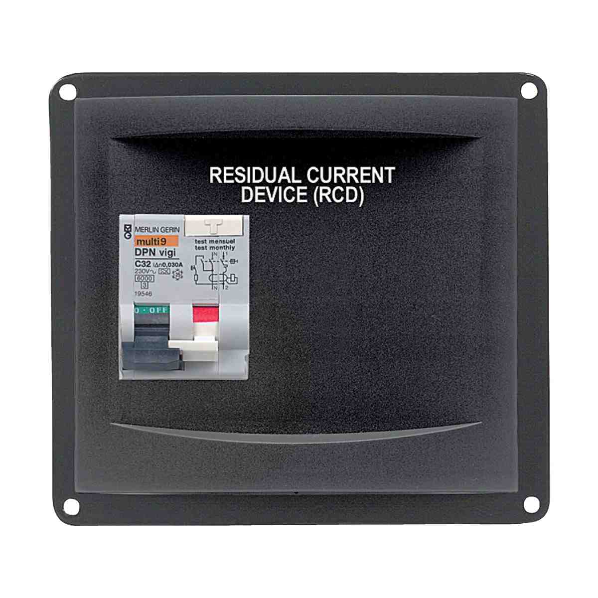 Recess mount panels housing a Residual Current Device (RCD). Produced to compliment the BEP Contour Circuit Breaker Panel range but due to the difference in style of the RCD’s the panels need to be mounted separately from the main AC panel. The RCD is a circuit breaker that disconnects the circuit on detection of current leakage (such as current leaking to the earth wire).