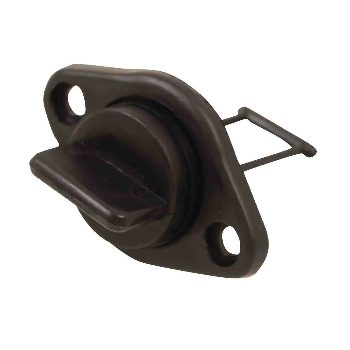 Moulded black plastic base and bung. Coarse four point thread. Bung retainer to prevent loss.