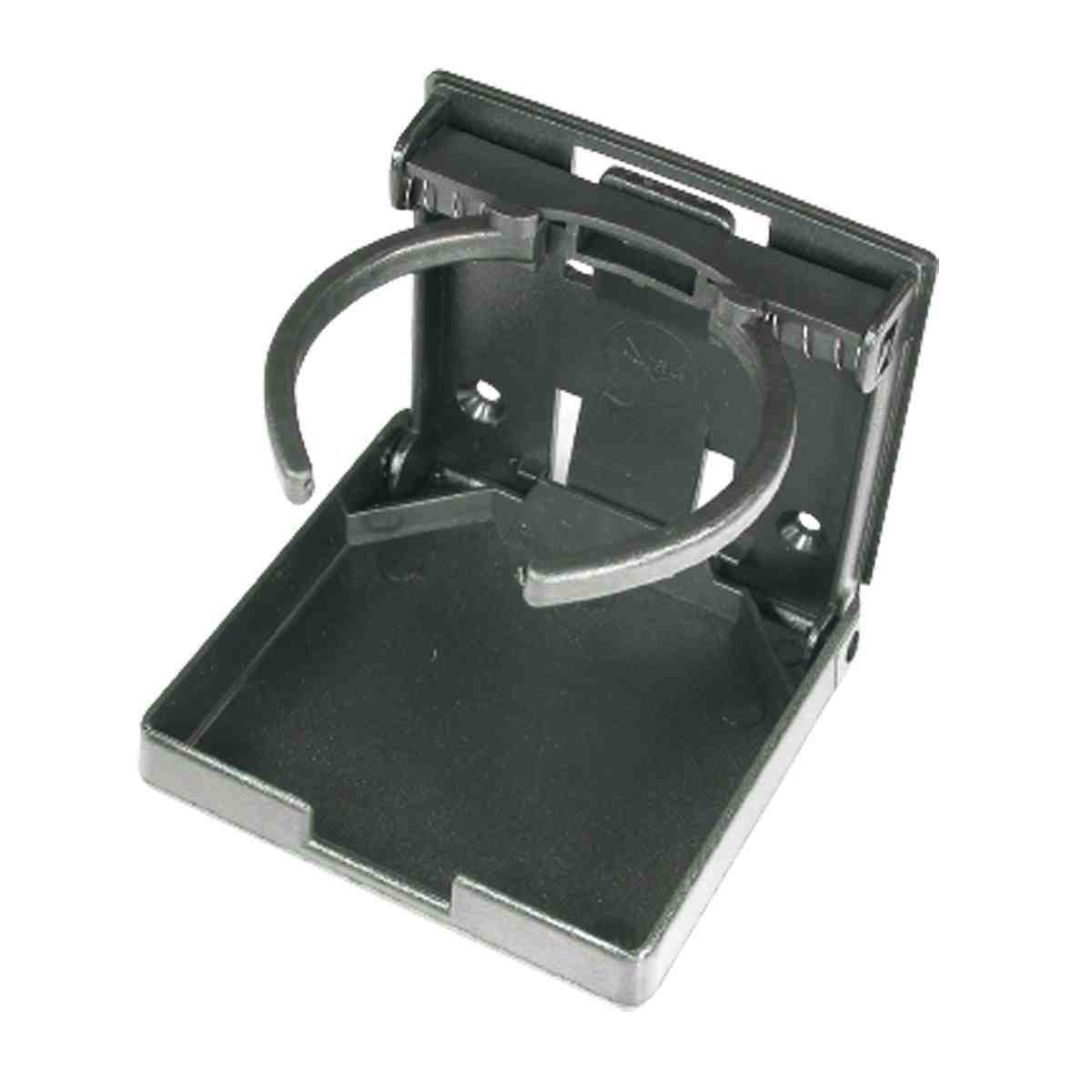Coil spring loaded adjustable retainer arms, holds drinks from 70mm to 85mm diameter. Mounts on any flat vertical surface. Folds flat to protrude just 24mm. Moulded from U.V. stabilised plastic.