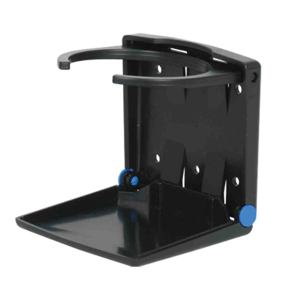 Mounts onto any flat vertical surface. When not in use the unit folds down to protrude only 24mm. Fold out the retainers to hold glasses up to 75mm in diameter. Moulded in tough U.V. stabilised plastic.