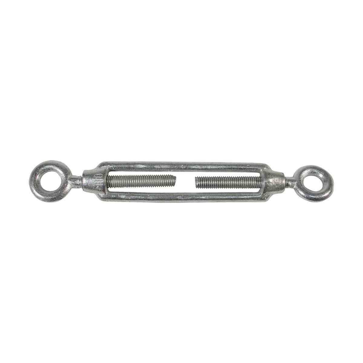 Eye and eye, die cast electro galvanised open body. Commercial grade. Suitable for light weight applications in tensioning systems.