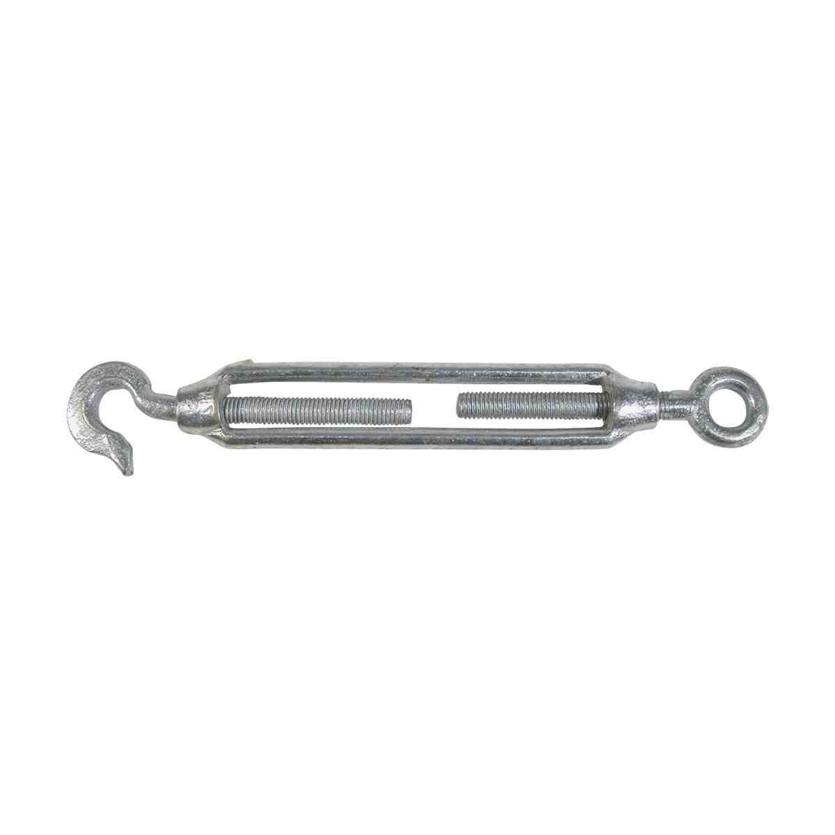 Hook and eye, die cast electro galvanised open body. Commercial grade. Suitable for light weight applications in tensioning systems.