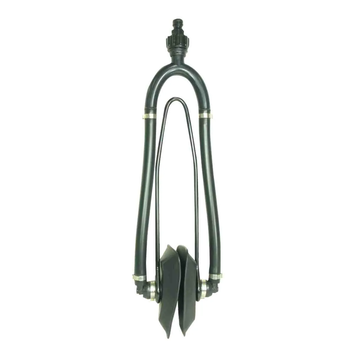 Black rectangular rubber cups 80mm x 130mm approximately, with spring steel tensioner and dual flush to provide equal pressure to both pick ups. Sold complete with a quick connect style hose fitting. Suits most outboards and stern drives.
