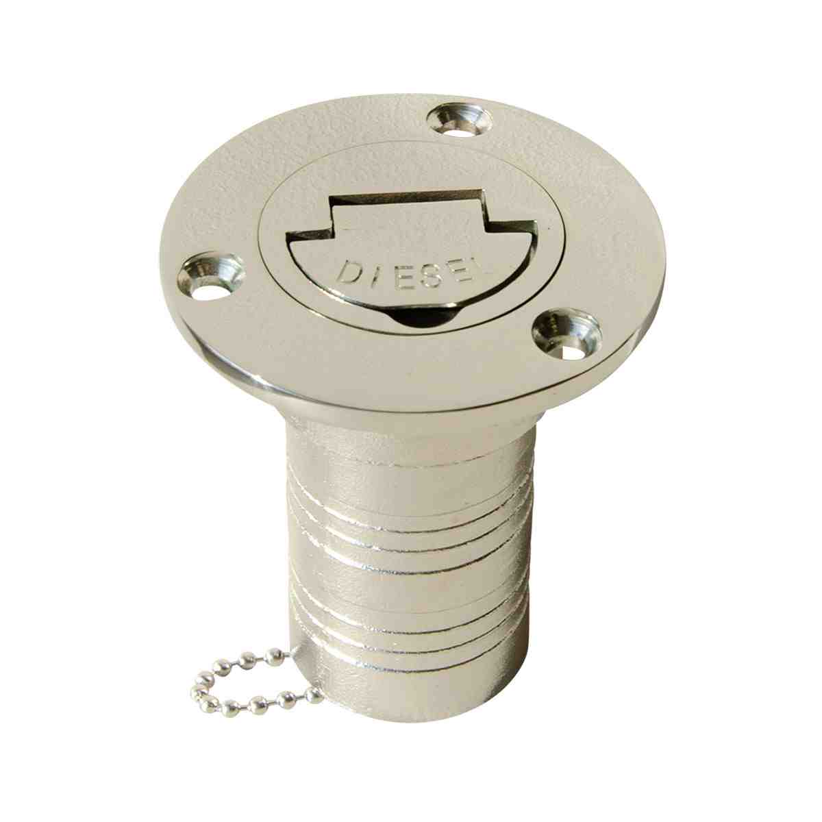 Flush mount, lost wax cast, 316 grade stainless steel deck fillers. Unique flip-up key ensures ease of removal at all times. Features coarse thread, ‘O’ ring seal, retaining chain and filler type identification moulded into the lid.