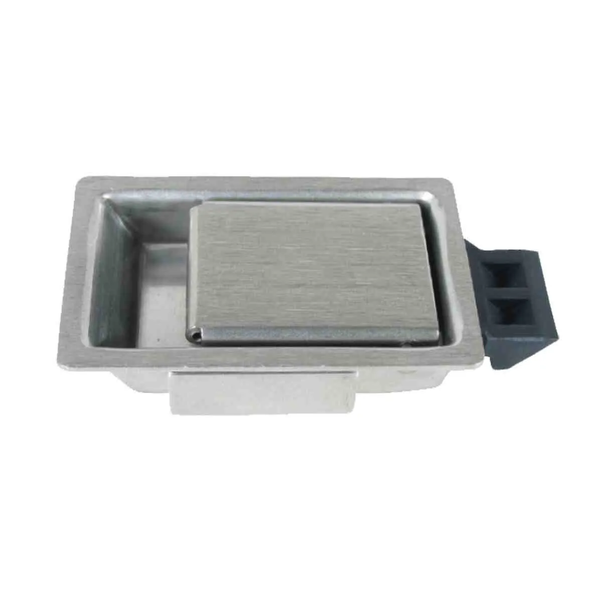 Attractive brushed stainless steel. Flush styling. Smooth push-to-close latching, pull paddle to open. Quick one screw mounting. Spring loaded paddle that won’t rattle. Made from 304 grade stainless steel, aluminium and polyester thermoplastic.