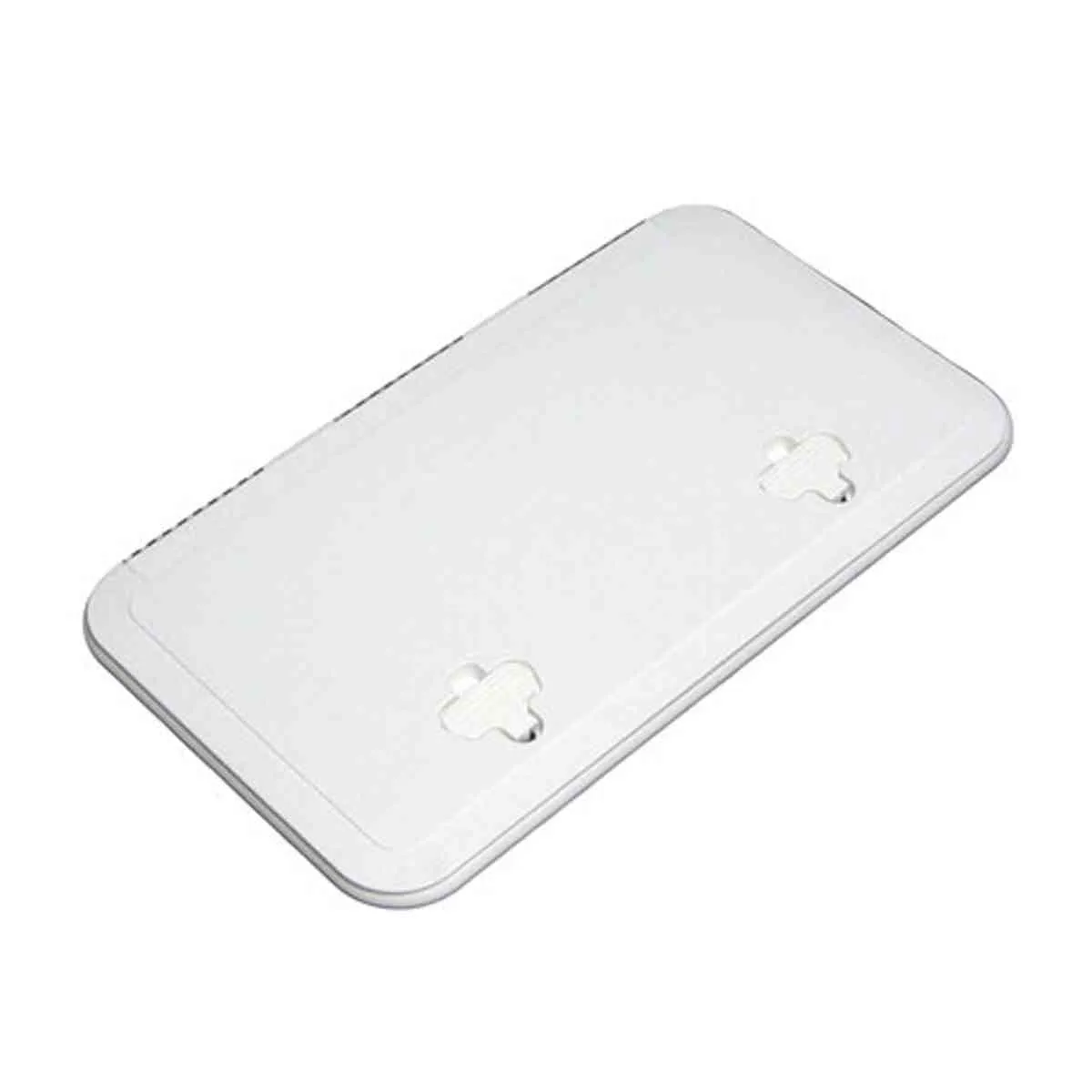 A low profile range of white access doors designed for installation on internal or external vertical or horizontal surfaces. Featuring high impact U.V. resistant Saralon resin, the heavily reinforced lid includes a non slip surface and is resistant and impervious to harsh chemicals. The lid hinges through 180° and covers the mounting flange, concealing the fastenings while helping to shed water. Additionally, 173292 and 173294 have been specially designed and engineered to be used in-floor where foot traffic may be expected. The in-laid gasket seal ensures excellent weather protection while the heavy duty 316 grade stainless steel hinge can be through bolted for added strength. For secure closure the Saralon resin handles feature a positive stop plus click home lock. Specially designed removable plastic storage tubs are available separately and are designed to fit the 173292 or 173294 when mounted horizontally.