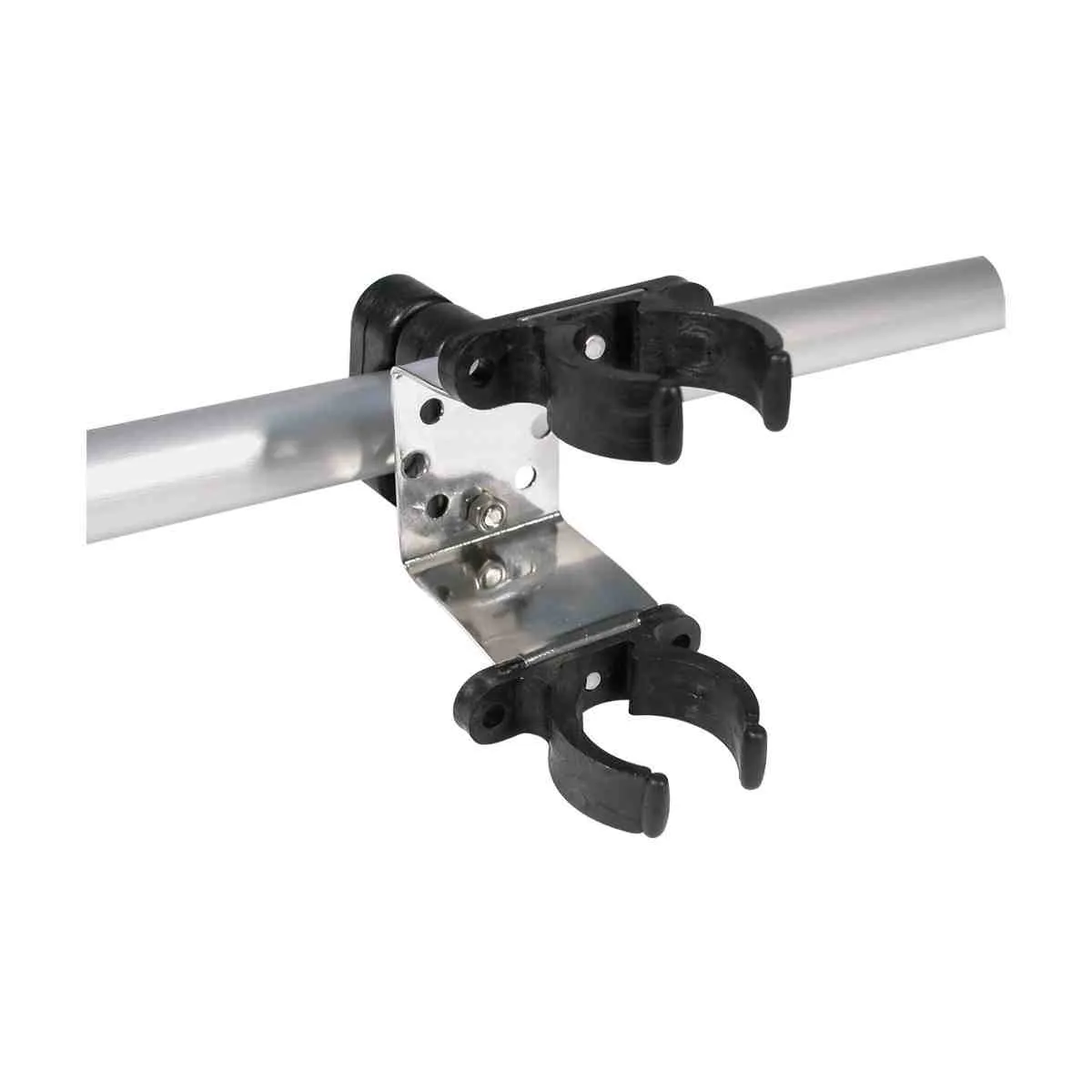 Stainless steel bracket with plastic tube clips. Supplied with rail mount adaptor to suit 22mm-25mm tube.