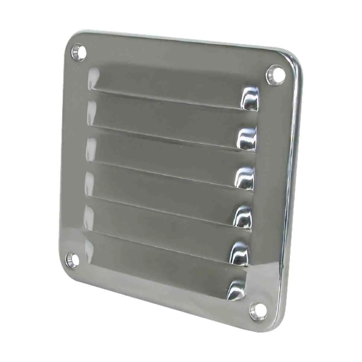 Highly polished, pressed 316 grade stainless steel raised louvre vent with rolled edges for extra stiffening, no sharp corners and better appearance. Surface mount.