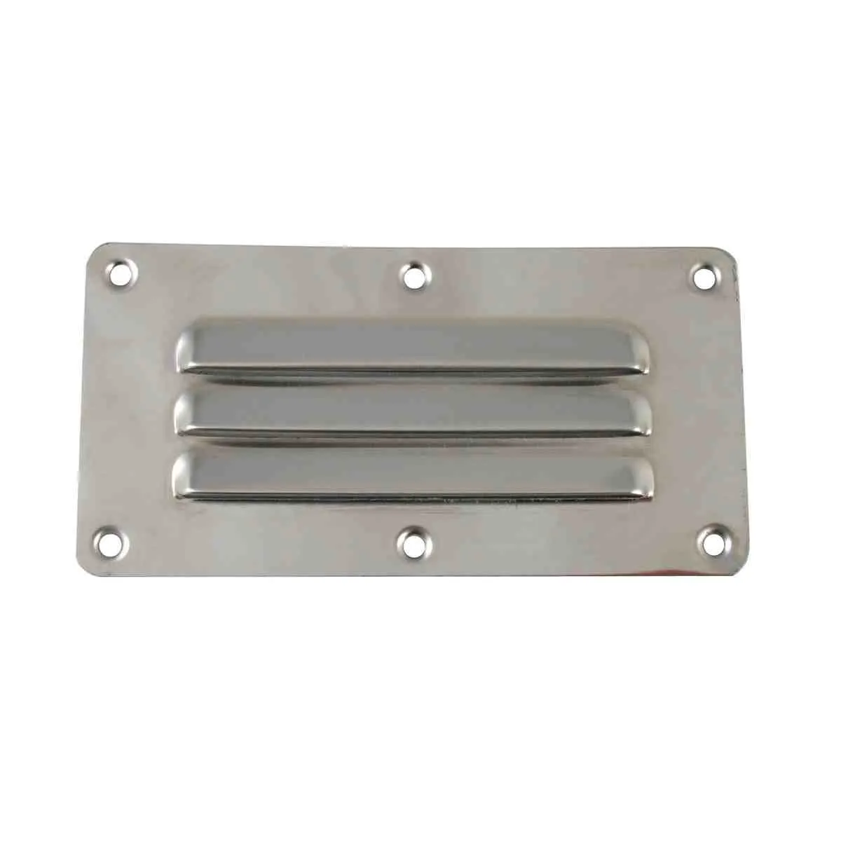 Pressed, polished stainless steel, low profile raised louvres. Surface mount.