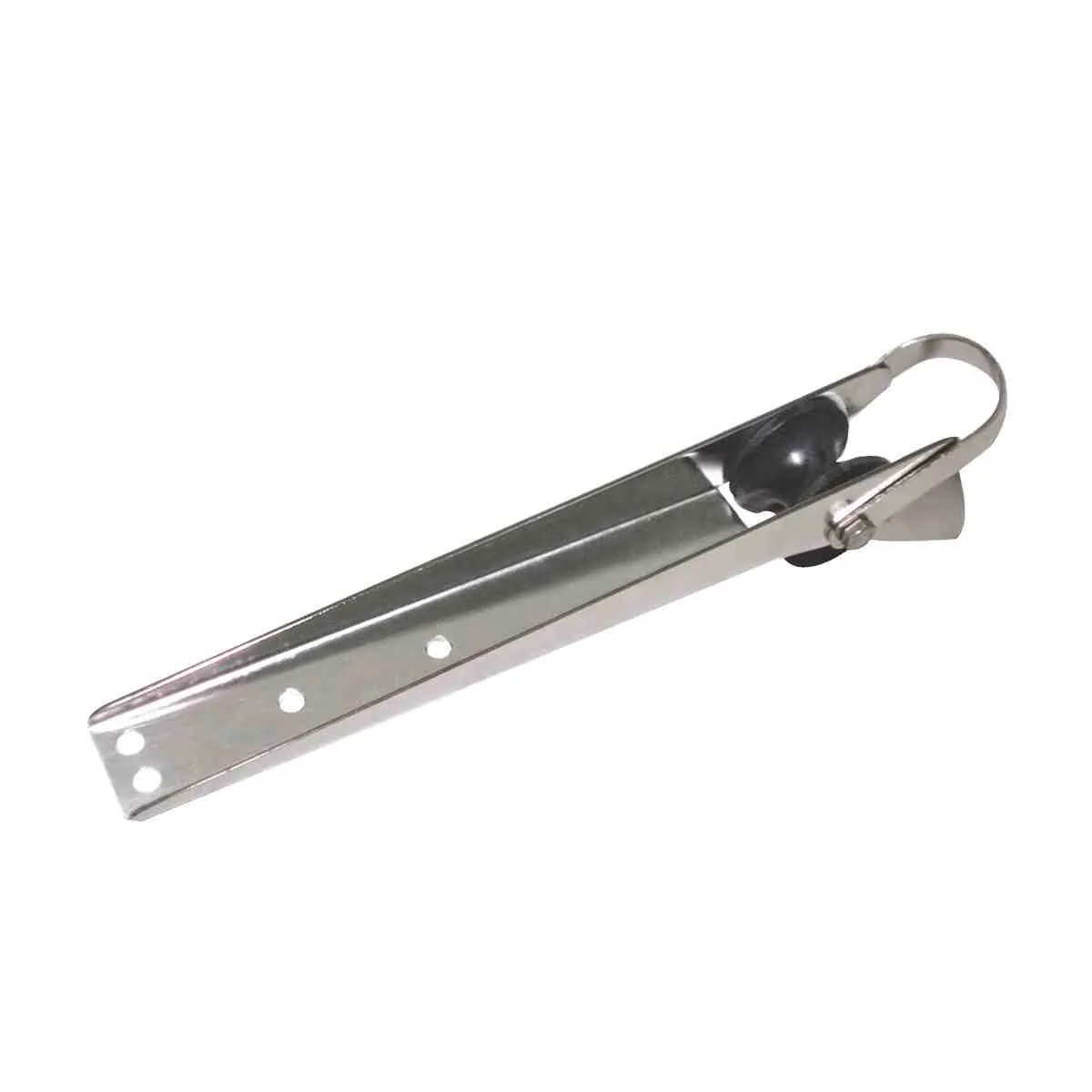 Heavy duty pressed 316 grade stainless steel construction, electro-polished finish. Non-corrosive large diameter black delrin roller. Saddle strap to retain anchor and warp.