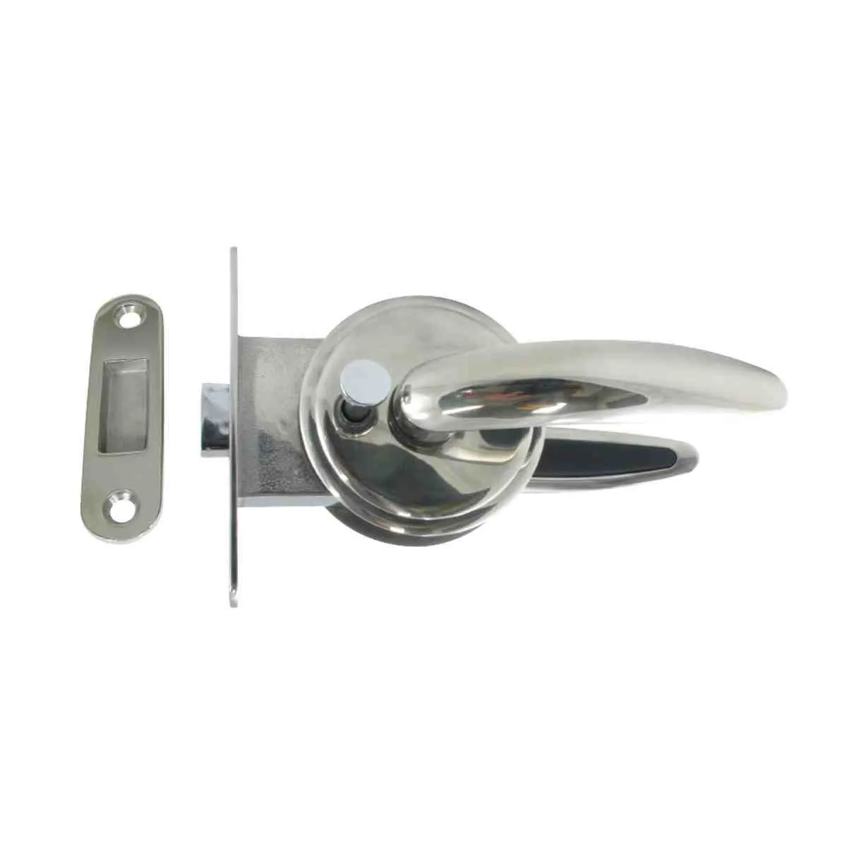 Smart design, smart looks and quality of manufacture have been combined in this new unique range of marine door locks. Latches operate by using two attracting magnets, one in the latch slide, and another in the strike plate. When door is closed both magnets align and latch actuates. These latches operate quieter than conventional spring latches, and as the latch is held closed by magnetic force, there is no vibration induced rattle.