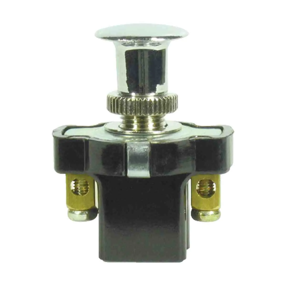 Mini, two position push-pull switch. Chrome plastic knob.12 volt, 5 amp.
