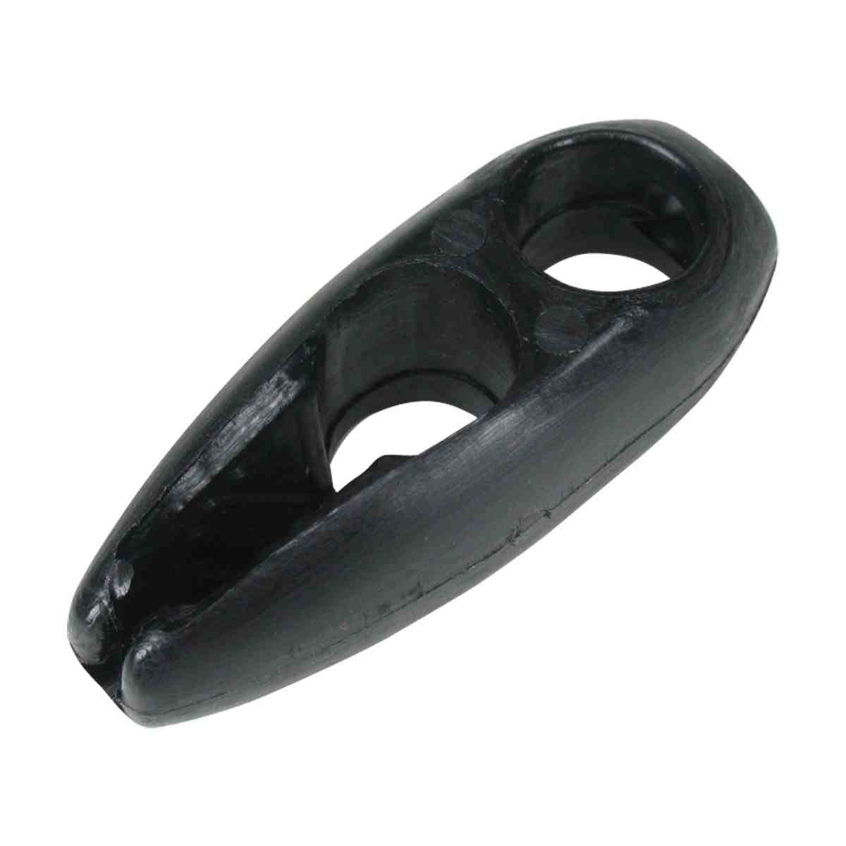 Injection moulded, black plastic. Designed to fasten up to 6mm shock cord in quick release integrated jaws, after forming loop to go around an anchoring point. Commonly used for sail ties, but has many other uses around the boat.