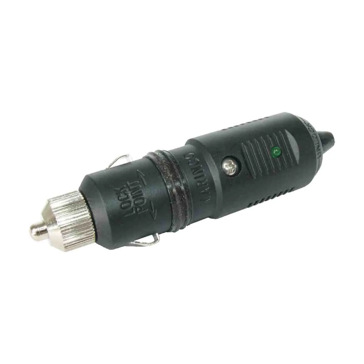Cigarette lighter style plug to suit common sockets. Suitable for use on 12 or 24 volt systems with appliances drawing up to 16 amps. Screws apart for fast simple connection with screw terminals. A range of power sockets in housings to match the Frilight interior light switches are also available.