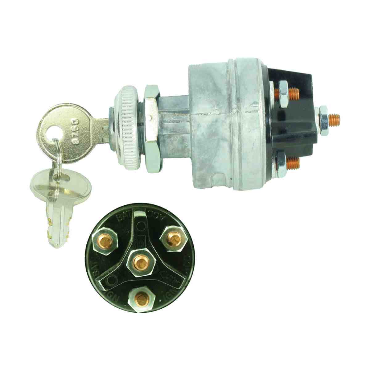 Die cast zinc housing with 4 position access off-run-start. Chromed knurled face nut. Four screw stud terminals.